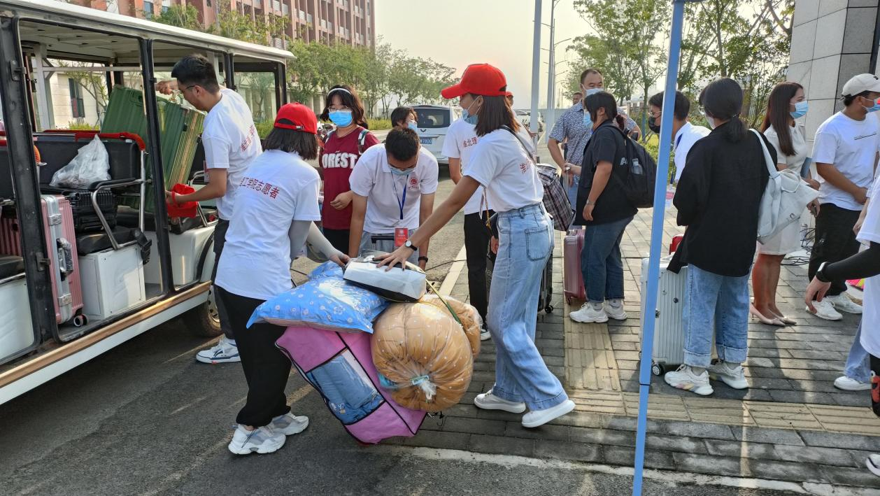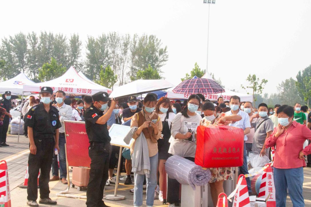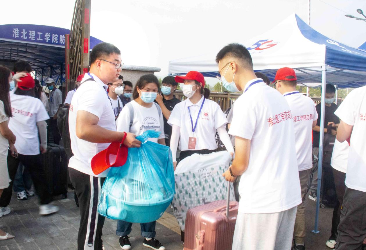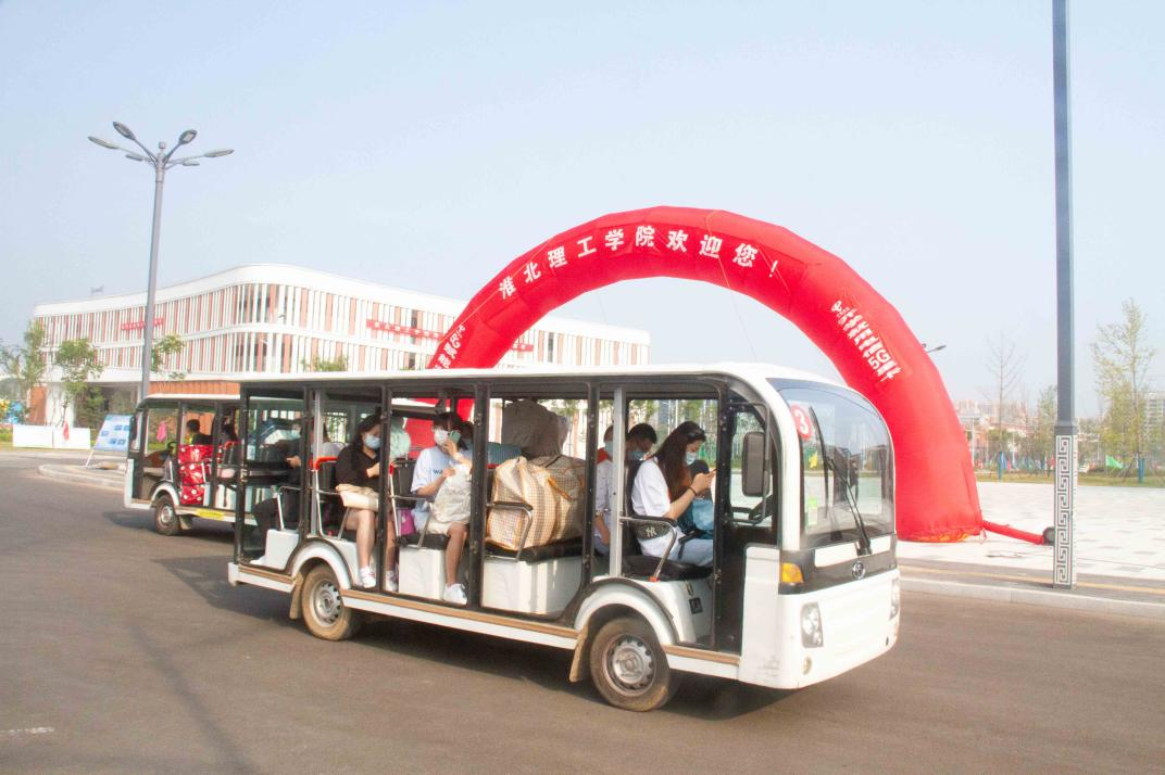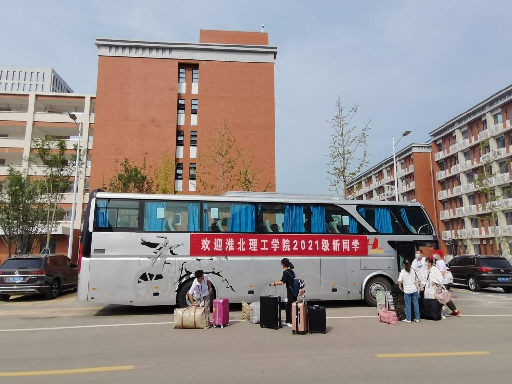 为做好迎新工作,学校在淮北汽车站、淮北火车站分别设置了新生接站点,安排教职工和志愿者们奔赴各个站点迎接新生和家长,安排车辆接送他们直达学校。根据2021年秋季开学疫情防控要求,新生及家长登上迎新车前要测温、查验行程码、安康码、核酸检测阴性证明和疫苗接种情况,并做好登记工作。对未提供48小时内核酸检测阴性证明人员,由医务人员在校门口现场进行核酸检测。