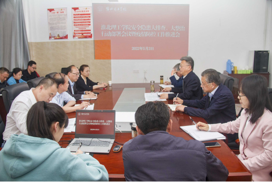 根据中共安徽省委教育工委等11部门《关于开展全省学校安全隐患大排查大整治行动的通知》文件精神,5月3日下午,beat365召开安全隐患大排查大整治行动部署会议暨疫情防控工作推进会,校领导班子成员及各部门、各二级学院负责人参加会议。会议由督导专员朱德顺主持,校长杨兵作重要讲话。