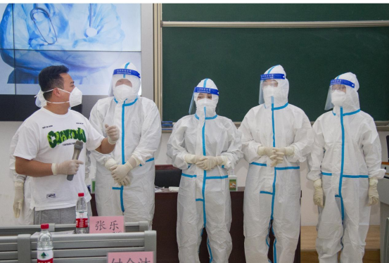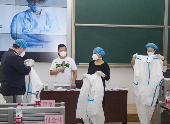 杜集区疫情防控应急综合指挥部办公室张乐向参训人员详细阐述了新冠防控总体要求、新冠肺炎风险人员管理、新冠肺炎疫情风险区划定及管控方案、常态化防控及疫情处置等新冠肺炎防控第九版方案的主要内容,并对参训人员就防护服穿脱及手卫生进行了现场培训。
