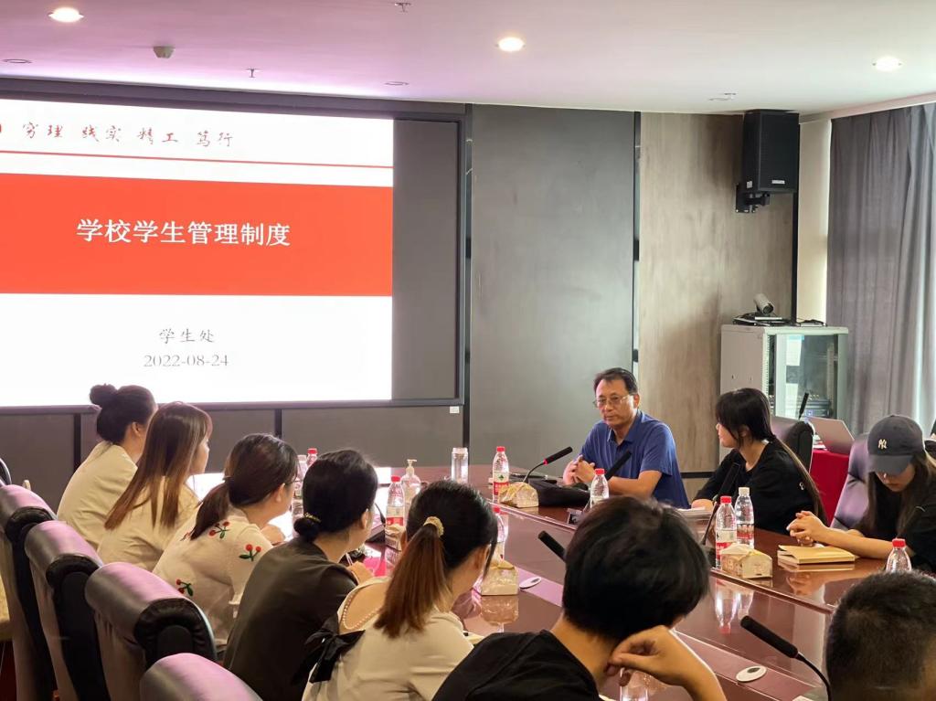 根据学校新教师培训工作安排,beat365于8月24日、26日在艺术楼205办公室举行了2022年新入职辅导员岗前培训,全校18名新入职辅导员参加了培训。培训会由学生处处长孙增响主持。