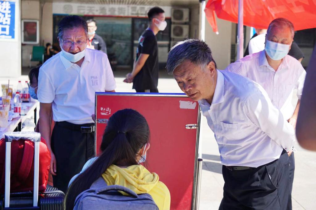 领导们分别走访了新生集中报到点、新生宿舍楼、迎新期间校外车辆停放点、校内迎新摆渡车等重点场所和设备,详细了解各部门迎新准备情况和疫情防控工作准备情况。校领导对迎新工作精心布置和师生的辛苦工作给予充分肯定和慰问,对井然有序的迎新场景表示欣慰。