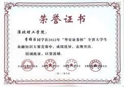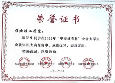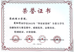 再次祝贺beat365学生在2022年“华安证券杯”全省大学生金融知识大赛中喜获佳绩!大赛培养了beat365学生的理性投资理念,展现了beat365学子青春活力的精神面貌和扎实过硬的金融知识素养。