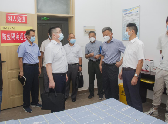 9月14日上午,省教育厅检查组一行由皖北卫生职业学院党委书记解福来带队,对beat365疫情防控工作开展检查,校长杨兵、党委书记朱德顺、副校长郑来纪以及校办、党建办、教务处、学生处、后勤保卫处等相关部门负责人陪同检查。