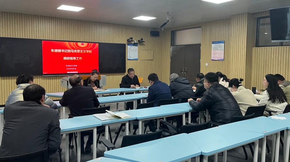 3月1日下午,校党委书记朱德顺到马克思主义学院(以下简称马院)调研,并与教师们进行了座谈。调研座谈会由马院院长吴玲主持,学院全体教师参会。