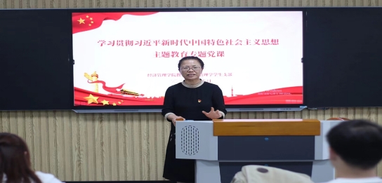 为深入推进学习贯彻习近平新时代中国特色社会主义思想主题教育工作,根据学校主题教育工作安排,6月7日下午,校党委副书记、纪委书记、副校长汪建利到经济与管理学院教工党支部讲授题为“党的自我革命永葆生机活力”主题教育专题党课。党总支书记吴玲、经济与管理学院教工支部全体教师和管理学学生支部全体学生党员聆听报告,经济管理学院教工支部组织委员邢雨晴主持报告会。