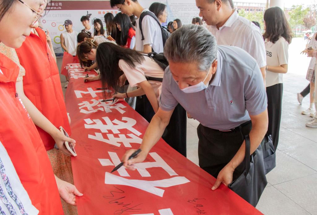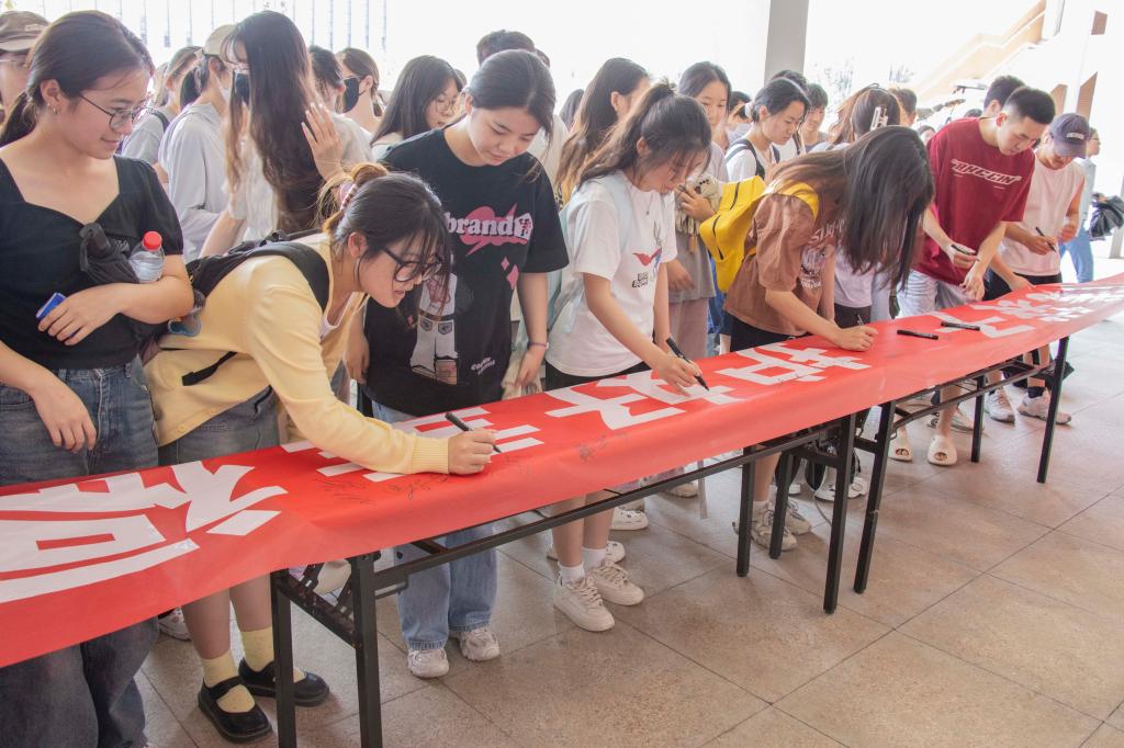 签名现场气氛活跃,醒目的签名横幅吸引了很多同学驻足,在了解了活动内容后,师生们坚定地签下名字,将防范非法集资的坚决在字里行间传递。活动现场还通过悬挂宣传横幅、发放宣传资料等方式,现场讲解防范电信诈骗、为师生普及了非法集资的风险、非法集资知识,普及各类金融知识,进一步加强师生风险防范意识,切实守好“钱袋子”。