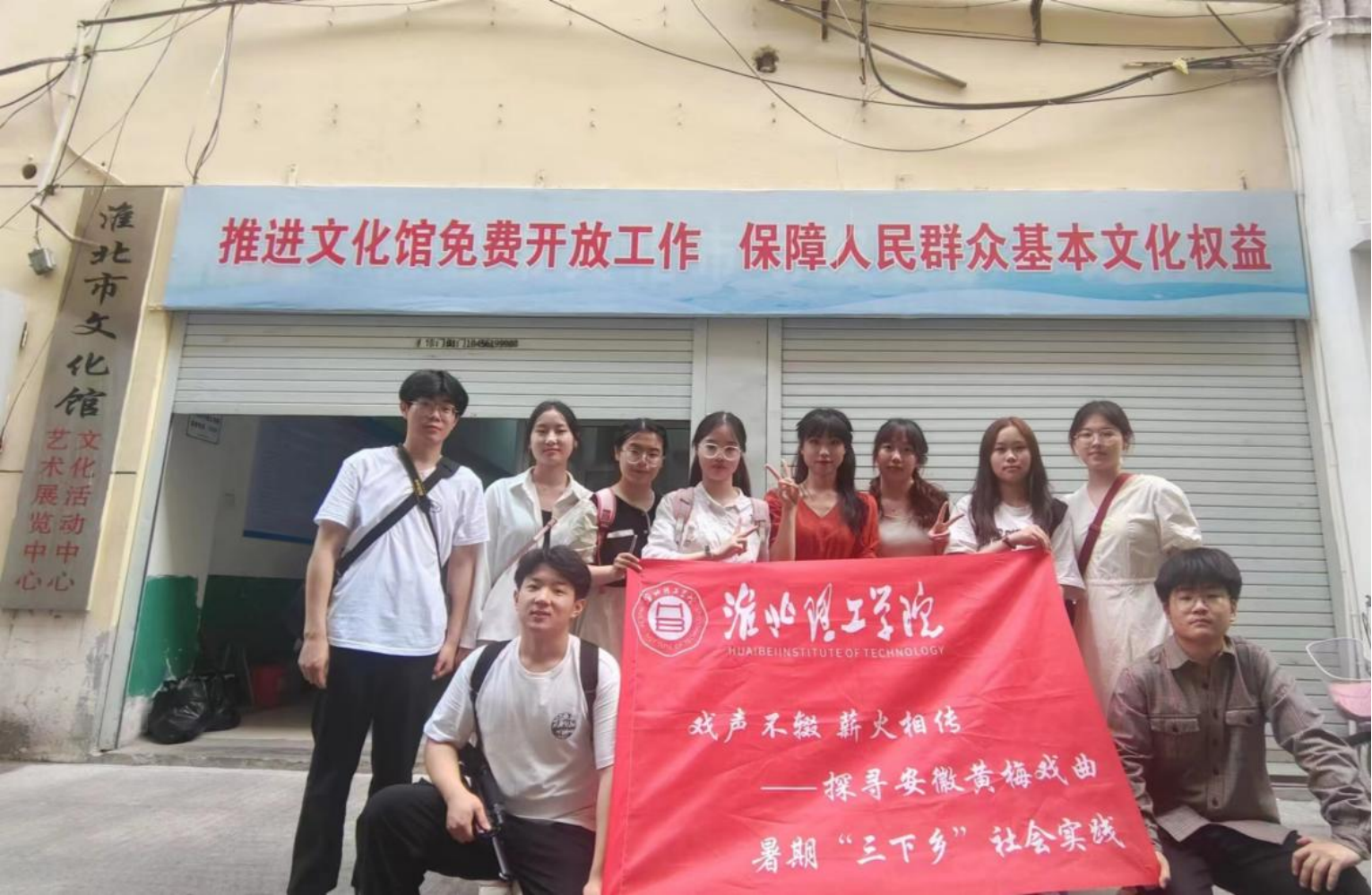 学习戏曲文化,感悟中华国粹。为深入贯彻习近平总书记“繁荣发展戏曲事业关键在人”的重要指示精神,更好地传承中华优秀传统文化,让学生领略戏曲艺术的魅力,增强学生文化自觉和文化自信,进一步推动广大学子对传统戏曲艺术的传承普及,7月上旬,beat365唯一官方网站扬戏曲承国粹暑期社会实践团队秉持“戏声不辍,薪火相传”的基本理念,来到淮北市黄梅戏基地开展为期5天的暑期三下乡社会实践活动。