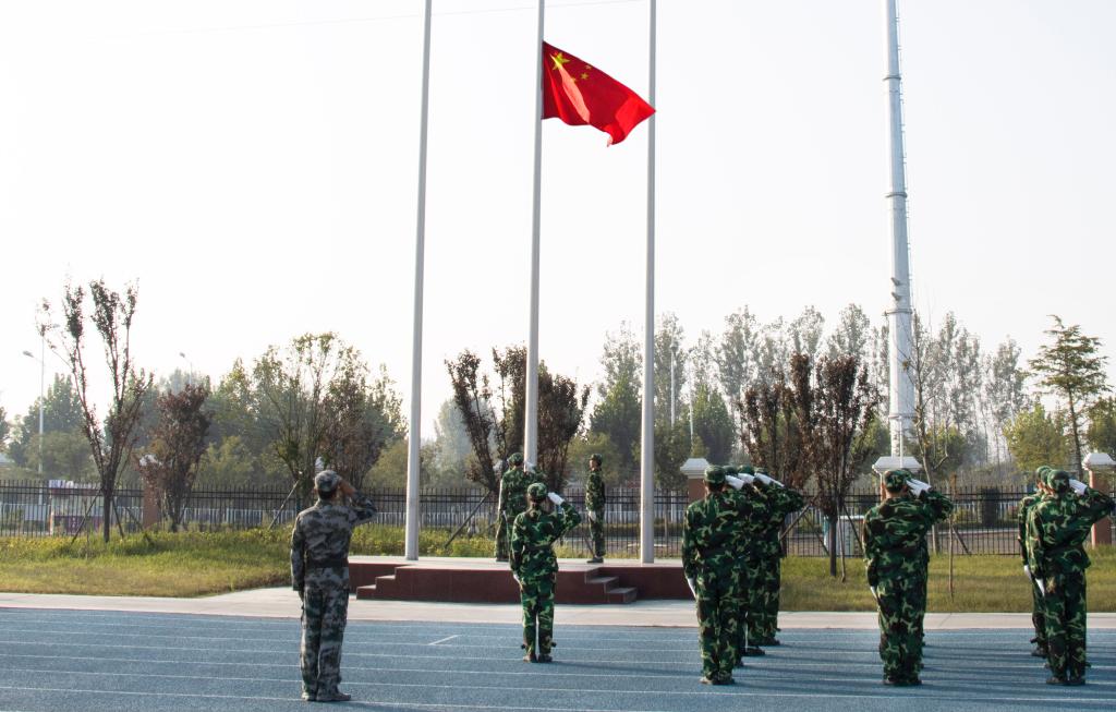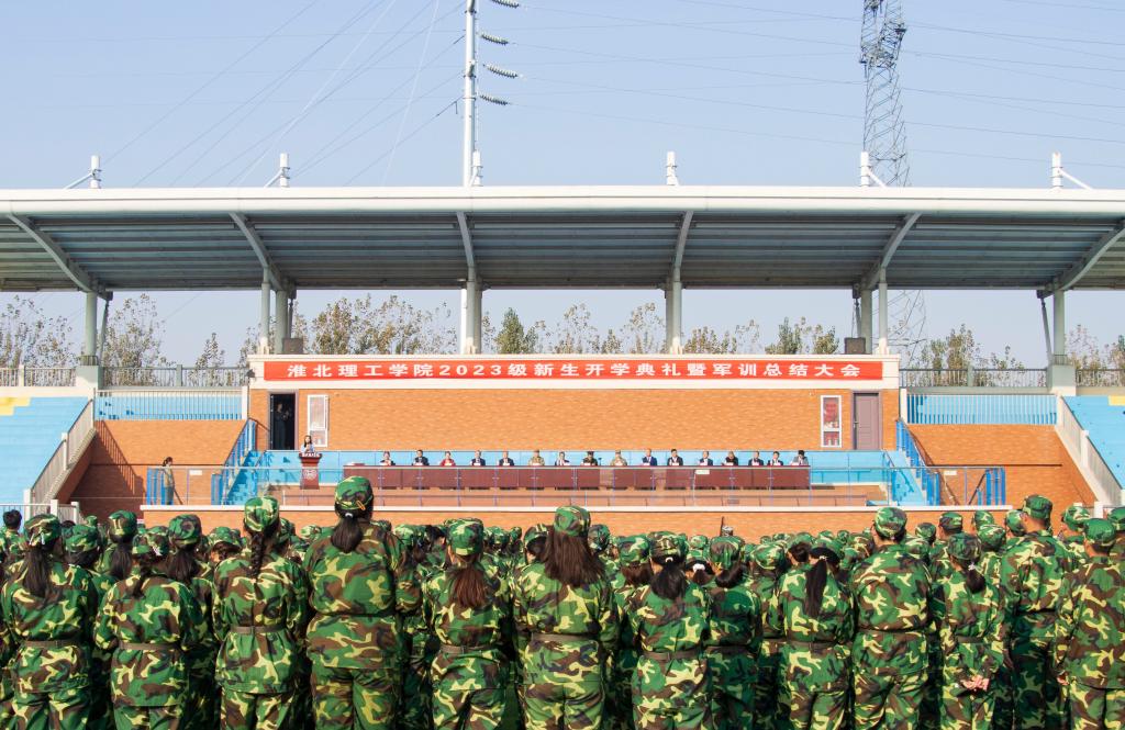 10月22日上午8点,学校2023级新生开学典礼暨军训总结大会在田径运动场上隆重举行。在国旗护卫队的庄严护卫下,鲜艳的五星红旗冉冉升起,2023级全体新生身着戎装,军容整齐,以昂扬的精神面貌在田径运动场依次列队,准备接受主席台检阅,汇报训练成果。淮北市委常委、淮北军分区大校、政治委员吴培清同志,淮北军分区战备建设处上校、处长俞成明同志,杜集区委常委、人民武装部上校、政治委员彭利国同志莅临典礼现场。校党委书记朱德顺,党委副书记、纪委书记、副校长汪建利,副校长郑来纪、各部门负责人、各二级学院院长、副院长及2023级全体辅导员参加典礼。典礼由汪建利主持。