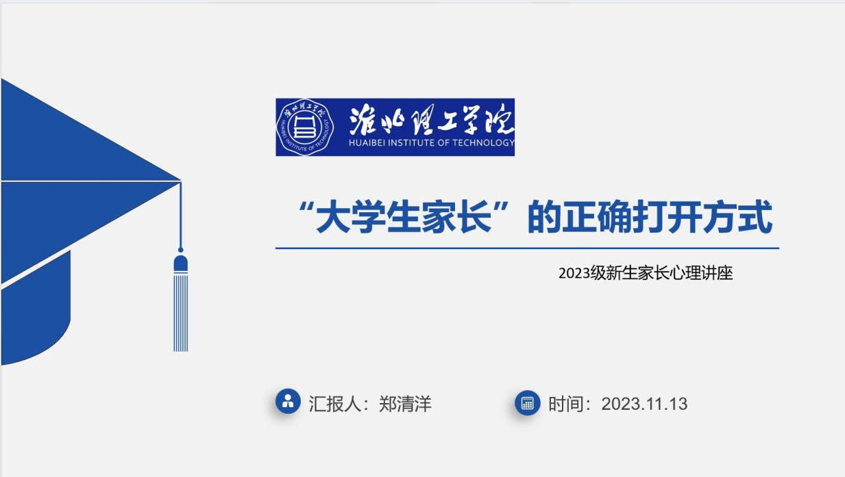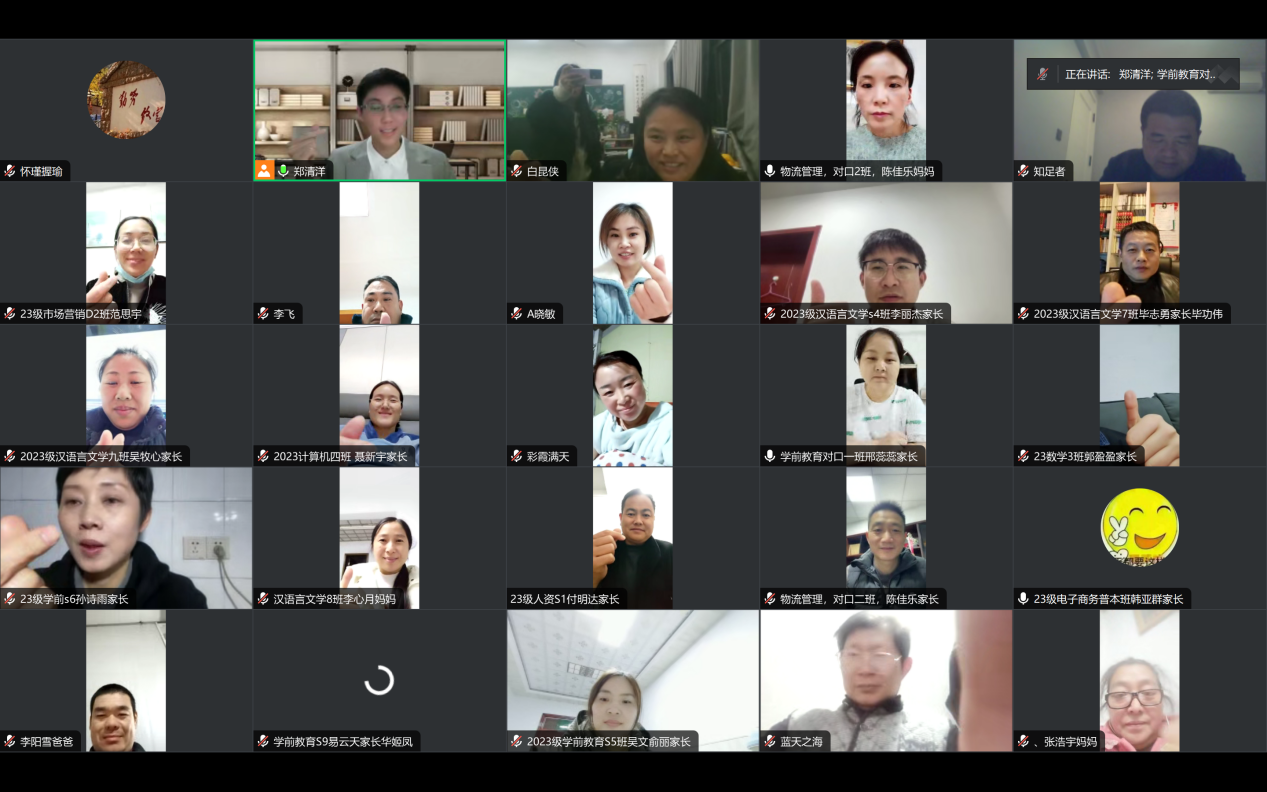 为进一步增强家校共育,凝聚家校合力,加强学生心理健康教育,11月13日晚上,由校心理健康教育与咨询中心主办的新生家长线上心理知识科普讲座顺利举行。本次讲座由心理中心郑清洋老师主讲,2023级各班新生家长代表受邀参加了此次线上讲座。