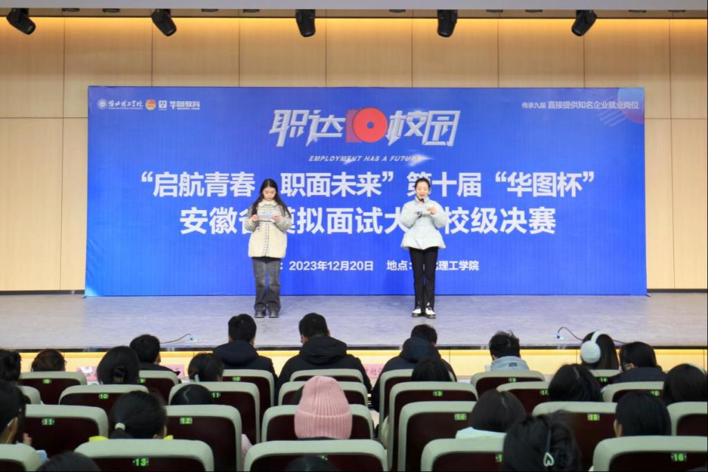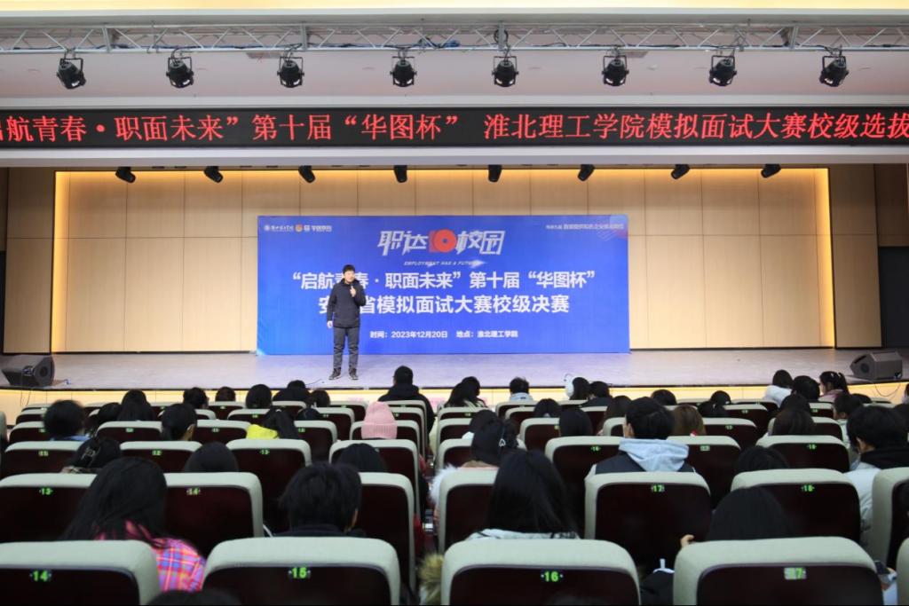 为促进学生高质量充分就业,提升学生的面试技巧,增强择业意识和就业竞争力,为未来的职场生涯打下坚实基础,beat365于12月20日在学术报告厅举办安徽省“启航青春·职面未来”第十届“华图杯”模拟面试大赛校级决赛。华图教育科技有限公司淮北分公司校长权丹、校团委书记刘帅克、各二级学院团总支书记(负责人)参加活动并担任本次比赛评委。