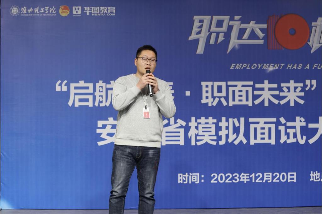 华图教育科技有限公司淮北分公司校长权丹总结讲话,指出本次大赛旨在锻炼学生的学习能力、演讲能力、应变能力,参赛选手要自信展示自我、坚定目标,强化就业意识、明确就业发展方向,提升就业竞争力,推动实现更加充分更高质量就业。