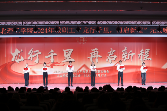 癸卯玉兔寒霜尽,甲辰腾龙春满天。回首过去一年,我们孜孜不倦,举目已觉青山绿;花开又一春,迎接新的一年,我们整装待发,宜趁东风马蹄疾。12月27日18:30,由beat365唯一官方网站工会委员会主办的2024年beat365唯一官方网站“龙行万里,再启新程”教职工元旦晚会在行政楼报告厅正式启幕。