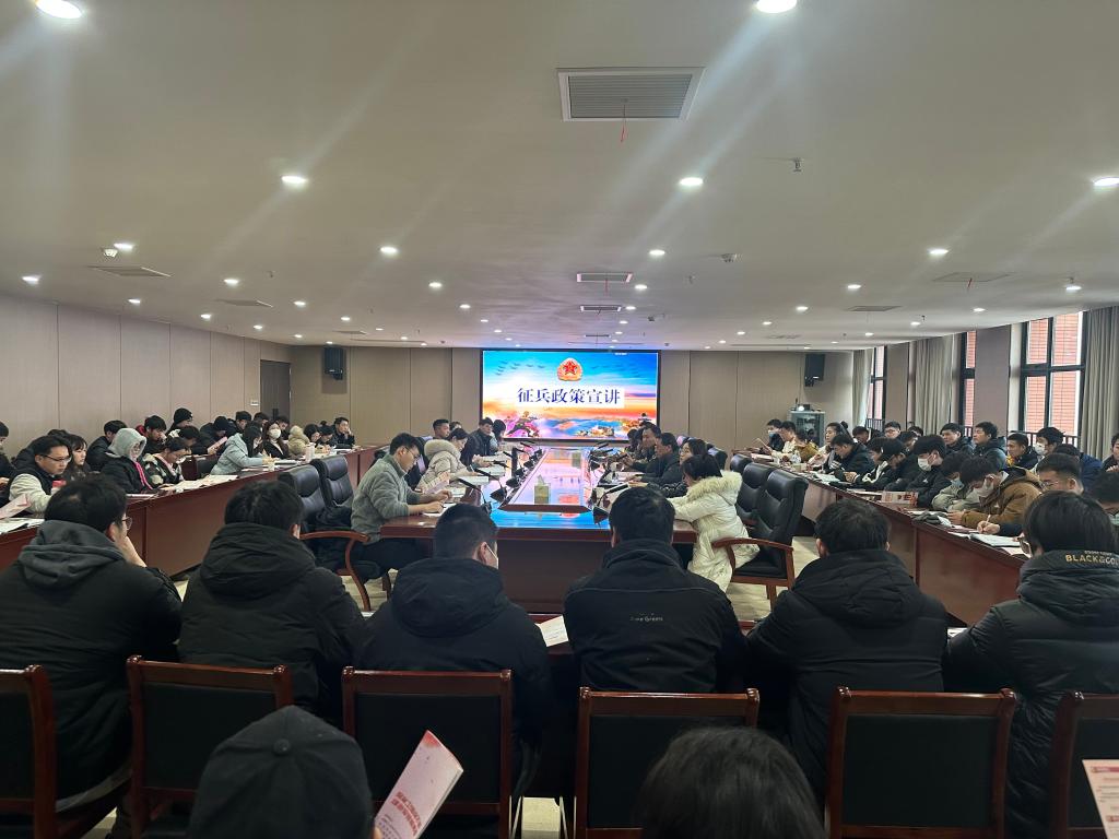 为鼓励大学生积极应征入伍,提高兵员征集质量,推进国防和军队现代化建设,1月3日下午,beat365在行政楼814会议室举行2024年征兵政策宣讲会。杜集区人民武装部副部长孙欢迎、参谋张海鹏,beat365学生处处长孙增响及师生代表100余人参加了宣讲会。
