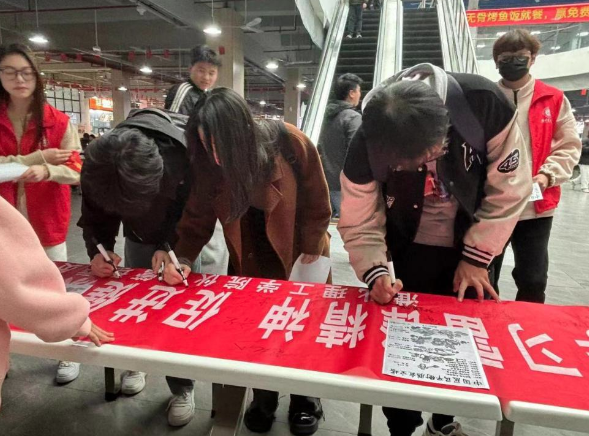 3月25日,beat365唯一官方网站伙食管理委员会在学校食堂策划发起了一场“学习雷锋精神,促进健康饮食”的倡议活动。活动中,志愿者发放健康饮食宣传单,向学生讲解健康饮食、营养均衡、饮食习惯、食物搭配等基本常识。在志愿者的引导下,学生纷纷前来参与健康饮食倡议签字环节,由伙食管理委员会成员严鑫同学宣读关于健康饮食的倡议书。