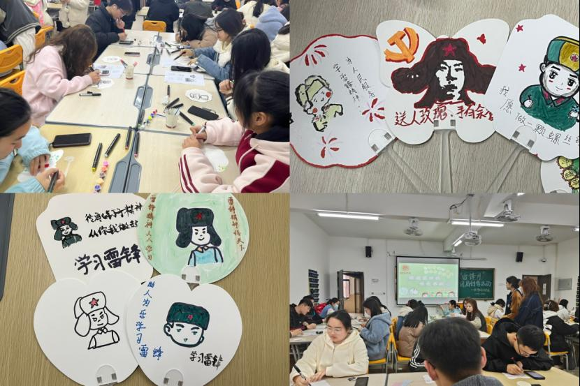 3月24日,校学生会开展“树雷锋形象,学雷锋精神”主题艺术创作活动。同学们分工协作,相互配合,协助整理有关雷锋的资料,同时准备了丰富的材料和工具,供大家更好的进行团扇创作。雷锋精神永放光芒,仁爱待人美名扬,同学们全神贯注作画,认真感受雷锋精神,将雷锋形象、雷锋精神语录,绘制在团扇上,牢记于心中。