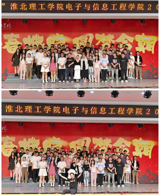 全体毕业生共同上台,与老师们合影留念。他们回顾了在校期间的点点滴滴,表达了对老师的感激之情,也分享了对未来的憧憬和期望。同学们纷纷表示,将永远铭记电信学院和老师的教诲,努力成为社会的栋梁之才。