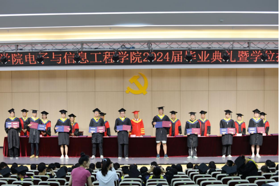仲夏时节,骊歌渐响;莘莘学子,奔赴九州。6月12日下午,电子与信息工程学院2024届毕业典礼暨学位授予仪式在学术报告厅隆重举行。校长杨兵、教务处处长陈国平、电子与信息工程学院院长朱昌杰、校学位委员会委员吕虹教授、电子与信息工程学院学位委员会委员及院长书记助理出席。毕业典礼由朱昌杰主持。
