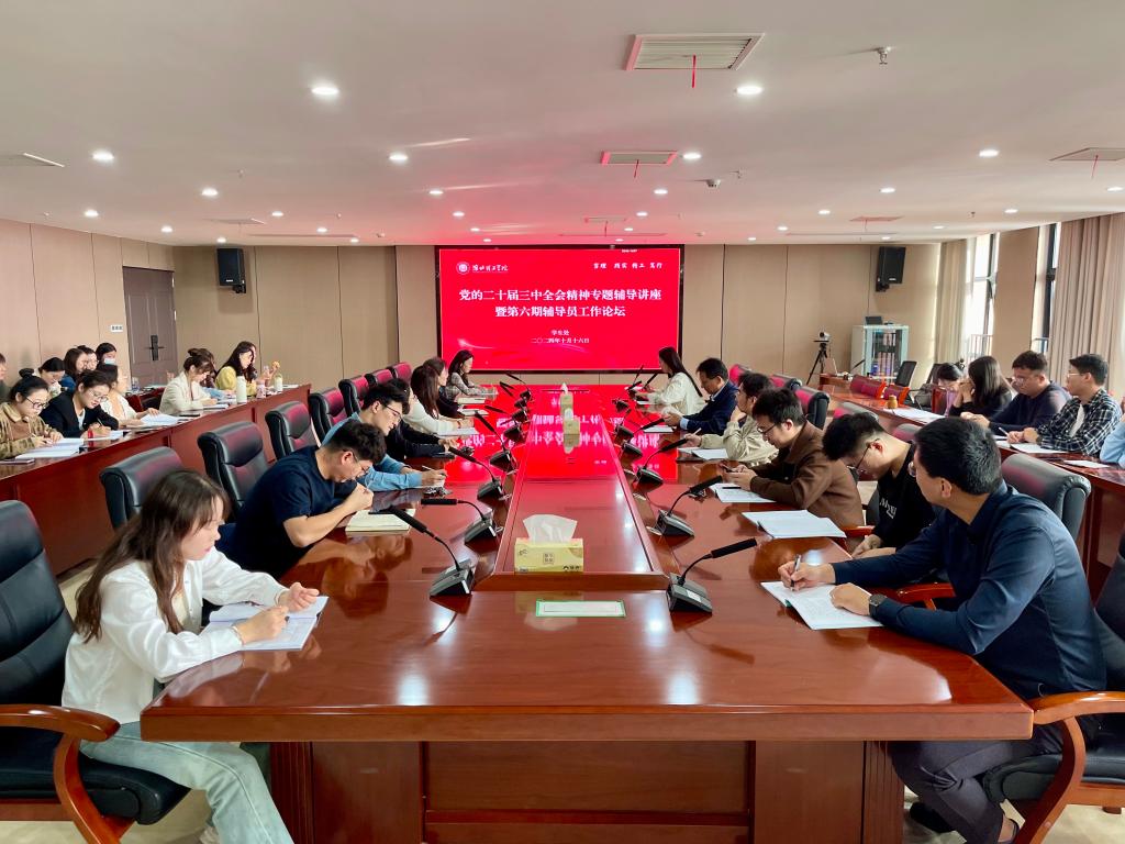 为深入学习贯彻党的二十届三中全会精神,提升辅导员队伍的政治素养和工作能力,10月16日上午,beat365在行政楼814会议室举办党的二十届三中全会精神专题讲座暨第六期辅导员工作论坛。本次活动邀请马克思主义学院教师孙澄澄担任主讲人,学生处处长孙增响、教育学院党总支副书记孟向红以及全体辅导员参加了会议。