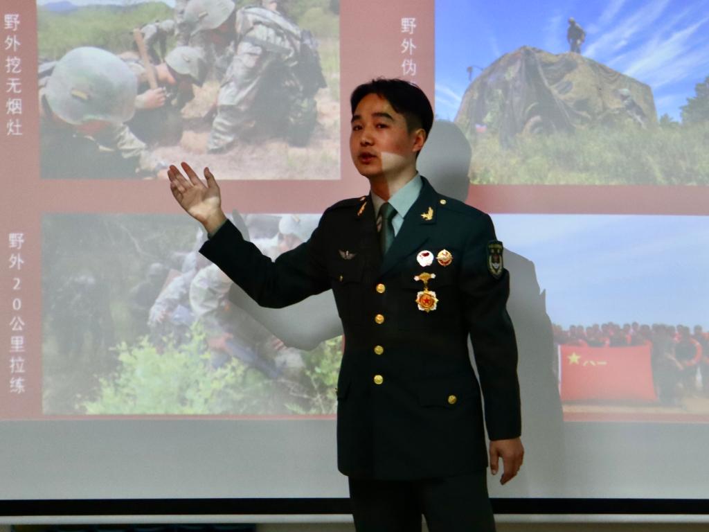 在二教208教室的宣讲会上,退伍大学生代表祁俊杰、张子晨、吴嘉奇、罗健为学生们解读了今年征兵的条件和相关政策,尤其是学生最为关心的大学生应征入伍可享有的升学优先、补偿学费和退役后享受就业优惠等优抚政策。他们鼓励大学生要敢于有梦、敢于追梦、敢于圆梦,让青春在军营的历练中、在为祖国的奉献中闪光。随后,他们向大家介绍了部队的生活和训练情况,军队的生活使他们收获了远大的理想信念,坚强的意识、良好的行为习惯和强健的身体素质。在分享过程中,退役士兵们纷纷呼吁广大同学们珍惜青春年华,勇敢地到军营中追逐梦想,到百炼成钢的熔炉中磨砺青春。他们用自己的亲身经历诠释了入伍的价值与意义,激发了同学们对军营生活的向往和憧憬。