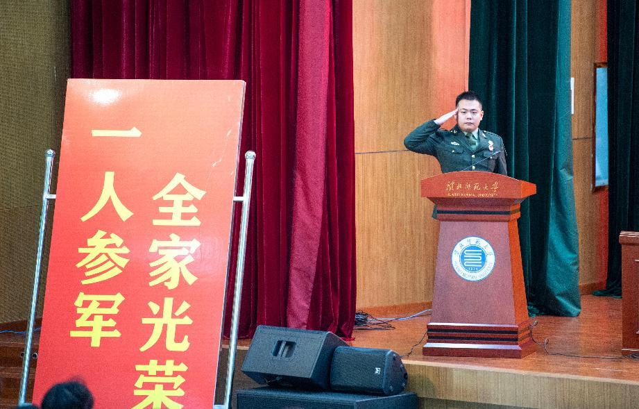 淮北职业技术学院应征学生代表赵徽号召全体大学生积极响应祖国号召,积极应征入伍,为国防和军队现代化建设贡献自己的力量。