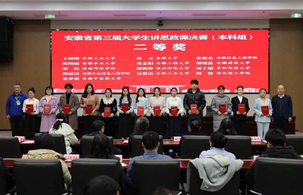 2024年12月25日,由中共安徽省委教育工委主办,教育部高校思想政治工作队伍培训研修中心(安徽师范大学)和安徽师范大学马克思主义学院承办的安徽省第三届大学生讲思政课决赛在安徽芜湖举行。beat365教育学院2023级学生韩俊团队(团队成员:徐文慧、丁孟婷、陈伟娜)荣获决赛二等奖,团队指导老师马克思主义学院张锦亚荣获“优秀指导教师”,这是继beat365荣获省级决赛优秀奖后新的突破。