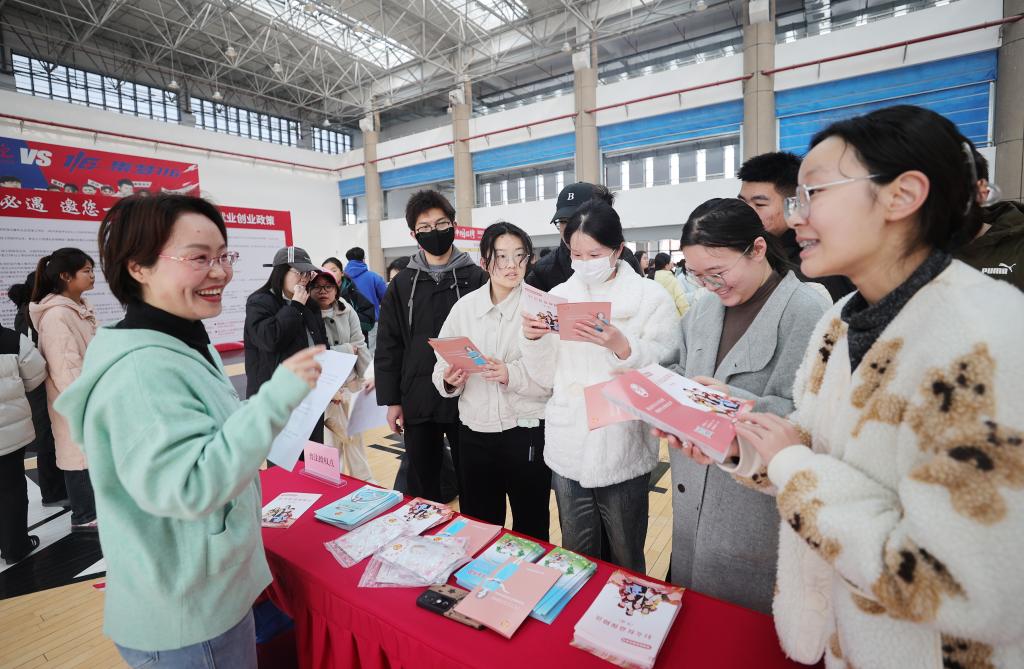 在招聘会现场,毕业生手持精心准备的简历,就福利待遇、职业发展、企业情况等方面积极与用人单位沟通交流。不少同学表示,十分珍惜此次校园招聘会的机会,希望能够在毕业前找到一份满意的工作,开启自己的职业生涯。市人社局的工作人员在现场为毕业生讲解人才留淮就业补贴政策,以及留淮创业政策,鼓励学生扎根本地就业、创业,推动人岗精准匹配。现场参会学生900余人,达成初步意向196人。