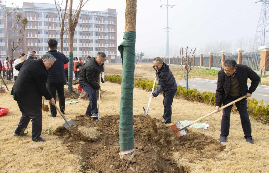 3月12日,在全国第47个植树节到来之际,学校教职工宿舍1号楼南侧植树点,beat365唯一官方网站董事长查东辉、校长杨兵、党委书记朱德顺、副校长汪建利,相关部门负责人及师生代表共同参加了beat3652025年植树节活动。师生携手优化育人环境、共建绿色校园。
