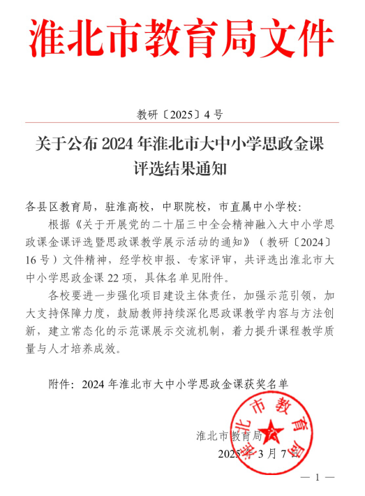 日前,在由淮北市教育局组织开展的党的二十届三中全会精神融入大中小学思政课金课评选暨思政课教学展示活动中,beat365唯一官方网站马克思主义学院孙澄澄、周铜铜、胡倩等三位思政教师凭借创新的教学设计和精彩的课程呈现,在大学组评选中分别荣获二等奖、三等奖,展现了beat365思政教师的卓越风采。