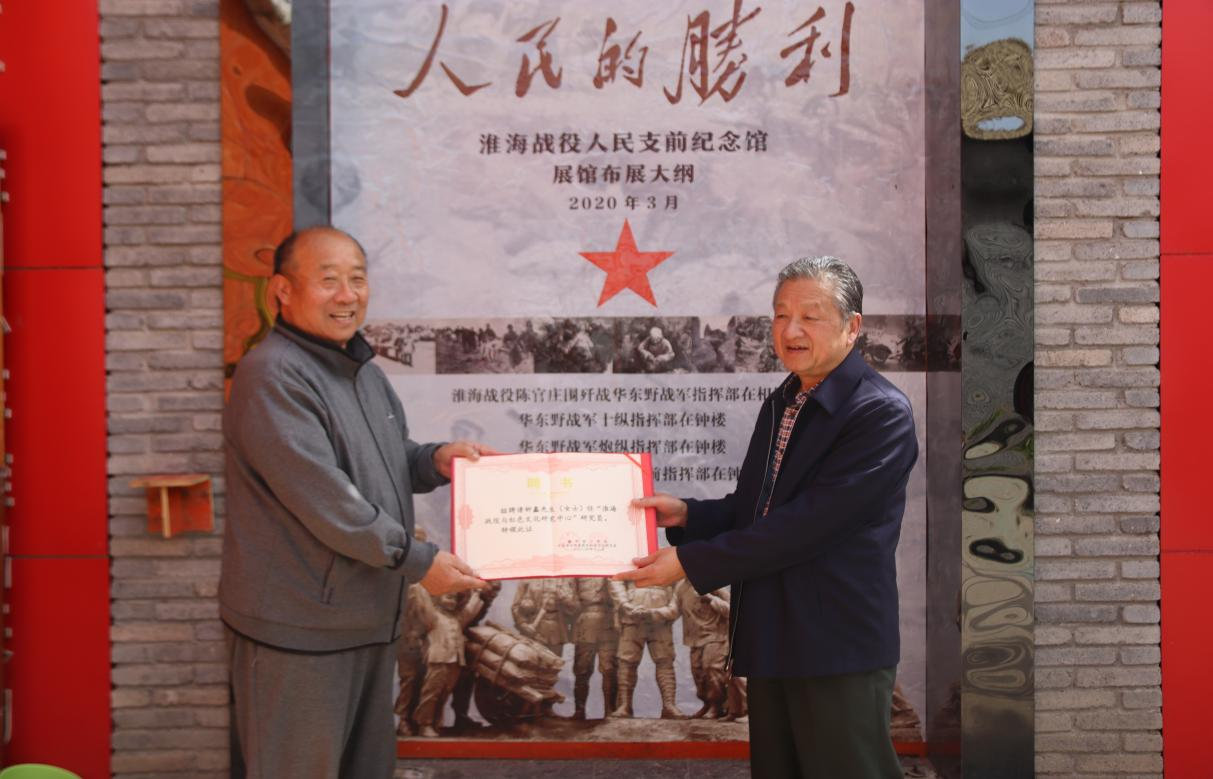 学校聘请钟鑫馆长担任"淮海战役与红色文化研究中心"特聘研究员并颁发证书。