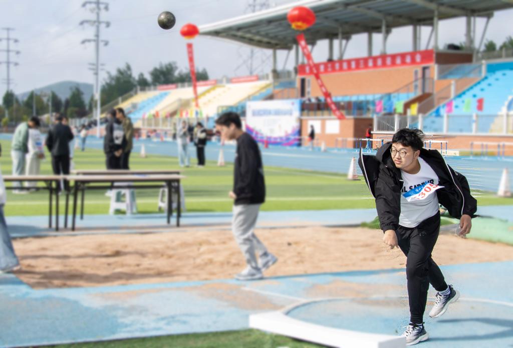 本次运动会设置了短跑、长跑、接力、跳高、跳远、铅球、掷垒球等比赛项目。跑道上,运动员们如离弦之箭,不断超越自我、突破极限,用速度与毅力诠释着体育精神;铅球比赛中,选手们摩拳擦掌、蓄势待发,用尽全力将铅球抛出;跳远比赛中,选手们奋力飞跃,在空中划过一道优美的弧线,那是对极限距离的挑战;接力赛中,运动员们相互信任、配合默契,为了集体的荣誉而飞奔,每一棒都承载着团队的希望……运动健儿们用力量与技巧诠释出青春的热情与活力,展现出运动的激情与魅力。赛场之外,热情的观众组成了一道道亮丽的风景线。他们挥舞着彩旗,呐喊助威,为每一位运动员加油鼓劲,加油声、欢呼声此起彼伏,响彻整个校园。
