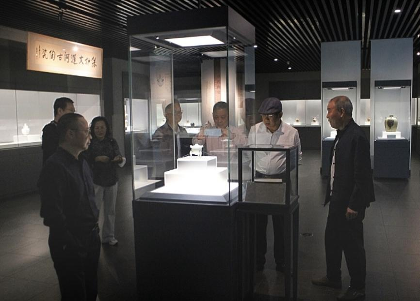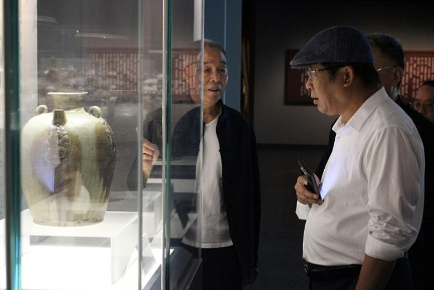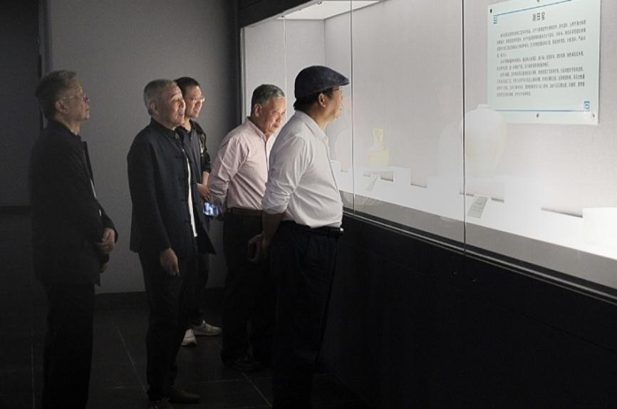 在隋唐大运河古陶瓷展厅,中国收藏家协会副会长丁仰振向叶念乔一行作了详细介绍。丁仰振副会长以馆藏珍品为脉络,生动阐释了隋唐、五代、宋金时期瓷器文物的艺术特征。考察团成员们仔细观赏了展厅内的每一件展品,被其独特的历史韵味和艺术魅力深深吸引。叶念乔董事长对丁仰振副会长的精彩讲解表示感谢,他指出,这些珍贵的文物不仅是中国古代陶瓷艺术的瑰宝,更是研究隋唐大运河文化不可或缺的实物资料。
