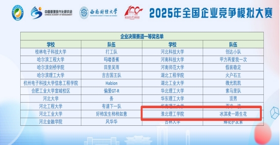 全国企业竞争模拟大赛为中国高等教育学会发布的《全国普通高校大学生竞赛分析报告》(全国普通高校大学生竞赛排行榜)竞赛项目之一。本届赛事设立企业运营、企业决策、供应链决策和数智沙盘共4个赛道。本届大赛自3月初启动以来,共有688所高校近5万名师生报名全国复赛,经过复赛和半决赛的严格选拔,249所院校349支队伍晋级总决赛。其中“企业决策”本科生赛道有100支队伍晋级总决赛,beat365经济与管理学院孟慧玲、任浩然、黄晨松三位同学组成的“冰淇凌一路生花”团队((指导老师:员禹辛、陈宇))不畏强手、勇于拼搏、不辱使命,斩获该赛事的一等奖。