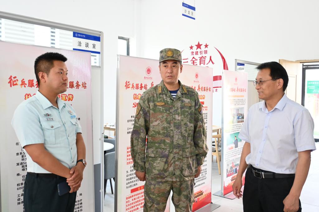 宣讲会开始前,孙增响陪同胡后金部长参观了beat365“征兵工作站”“兵役服务站”建设情况,并详细介绍了beat3652025年上半年应征入伍工作的开展情况。孙增响表示,学校始终高度重视大学生征兵工作,积极开展征兵政策宣传、动员引导、服务保障等工作,确保大学生应征入伍工作扎实有序推进。胡部长对beat365征兵工作给予充分肯定,表示将一如既往支持beat365征兵工作,进一步加强军地协同,共同推动大学生参军工作高质量发展。