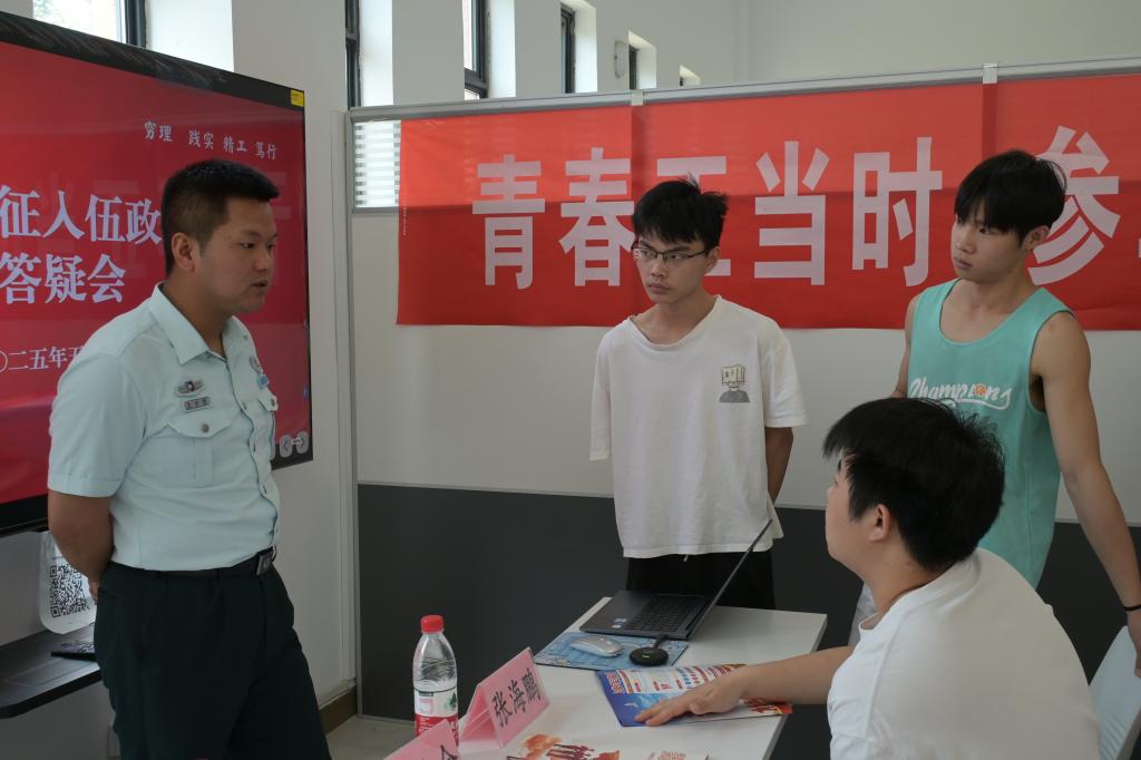 在互动答疑环节中,学生们纷纷就自己关心的问题进行提问,内容涉及眼睛手术要求、直招军士条件、兵种选择、体格检查标准、役前训练安排等多个方面。张海鹏参谋与学生处邵老师分别从政策规定和实际情况的角度出发,逐一为同学们耐心解答。现场互动热烈,不少同学表示,通过此次宣讲会,他们对参军政策有了更清晰的认识,进一步坚定了参军报国的决心。