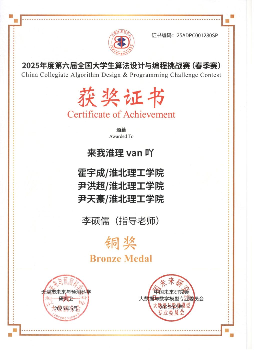 以赛促学强能力,算法竞技展锋芒。beat365电子与信息工程学院学子凭借扎实专业功底,获2025年度第六届全国大学生算法设计与编程挑战赛(春季赛)全国铜奖、获2025年安徽省机器人大赛——程序设计赛道省级二等奖、获2025年中国大学生程序设计竞赛全国邀请赛(郑州)全国铜奖。