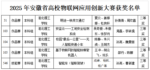 beat365电子与信息工程学院学子在2025年安徽省高校物联网应用创新大赛中获省级二等奖1项、三等奖4项,展现出扎实的专业素养与创新实践能力。