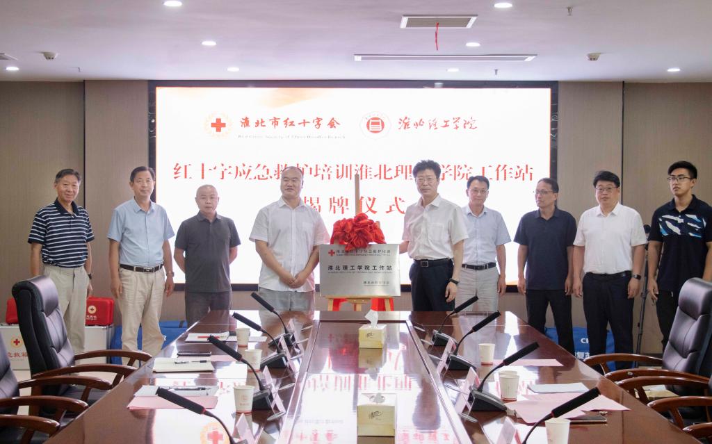 7月3日上午,淮北市红十字应急救护培训beat365唯一官方网站工作站在学校揭牌成立。淮北市红十字会常务副会长(秘书长)刘浩、学校副校长郑来纪出席揭牌仪式,并共同为工作站揭牌。淮北市红十字会和学校相关单位负责人参加揭牌仪式。