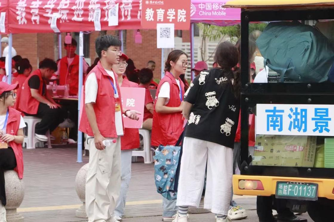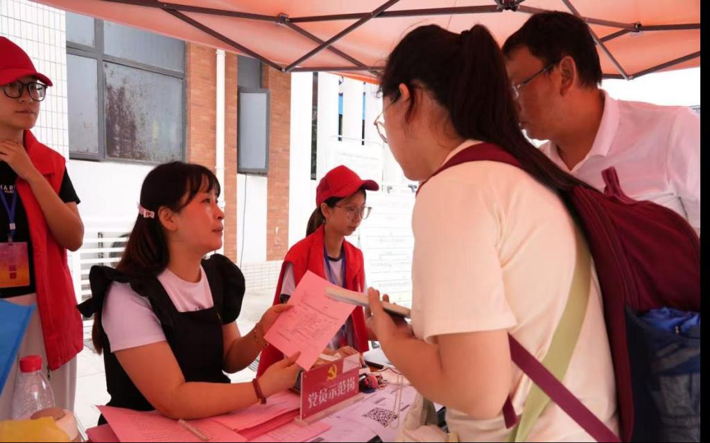 党员先锋,志愿相伴,师生倾情彰显校园温度。为了更好地推进迎新工作,学校设置了“党员先锋岗”“党员示范岗”志愿服务点,对新生报到过程中出现的特殊、紧急问题用心处理,全力以赴,迅速地协调解决。他们主动为新生及家长答疑解惑,手把手指导宿舍导航,细心叮嘱注意事项。这一个个先锋岗、示范岗,不仅是服务的窗口,更是温暖的象征,让初来乍到的新同学,刚踏入校园就感受到党组织的关怀与校园大家庭的浓浓暖意。