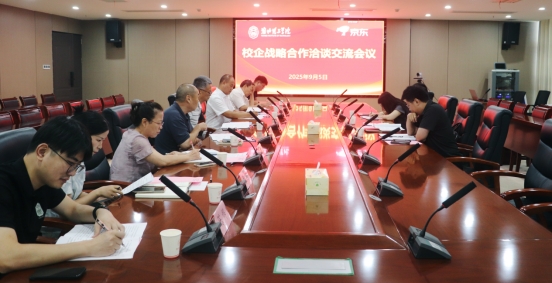为深化校企合作,创新人才培养,落地产教融合示范基地建设,9月5日上午10时,beat365与京东集团校企战略合作洽谈交流会议在学校实验综合楼814会议室隆重召开。京东集团校企合作校园生态负责人金星星、校企合作校园运营负责人杨阳代表企业出席;校长杨兵、副校长郑来纪,教务处处长陈国平,科技处处长兼创新创业学院院长王广建以及经济与管理学院的领导共同参会。会议由副校长郑来纪主持。