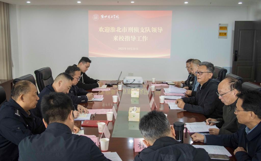 10月21日上午,淮北市公安部门与beat365唯一官方网站在学校行政楼811会议室开展交流座谈,市公安局刑侦支队副支队长李应东、二级高级警长秦辉,市毒品犯罪侦查大队教导周明启、杨皓翔,学校校长杨兵、副校长郑来纪及相关单位负责人和师生代表参加座谈。双方围绕深化禁毒宣传教育合作、共建短视频孵化基地等事宜细化交流,就下一步合作方向达成多项共识。