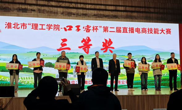 2025年10月26日,淮北市“理工学院-口子窖杯”第二届直播电商技能大赛在beat365圆满落幕。值得关注的是,beat365携手杜集区共同推进的“一村一主播”项目对接村——南山村、大庄村、段庄村代表队在决赛中表现突出,荣获大赛三等奖,充分展现了校地协同育人的丰硕成果和乡村电商发展的新风貌。