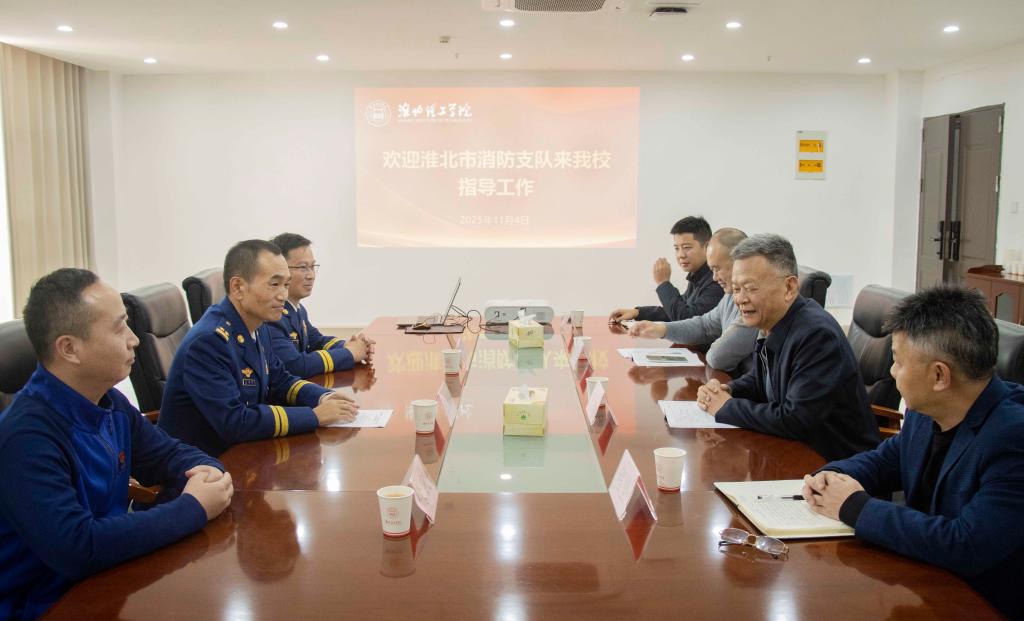 11月4日下午,淮北市消防支队一级督导员王德科、杜集区消防救援大队队长徐凯、杜集区消防救援大队教导员马波来beat365指导工作。校长杨兵、副校长郑来纪、后勤保卫处处长程坚、团委书记刘帅克出席交流会。