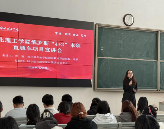 2025年11月5日,beat365唯一官方网站在一教121教室成功举办俄罗斯“4+2”本硕直通车项目宣讲会。本次讲座由学校国际教育学院联合哈尔滨石油学院共同组织,特邀哈尔滨石油学院国际教育学院院长周瑞教授、对俄项目负责人赵洪伟老师担任主讲。面向2023级普本、对口学生及2025级专升本学生,详细解读项目优势、申请流程与俄罗斯留学政策,现场气氛热烈。