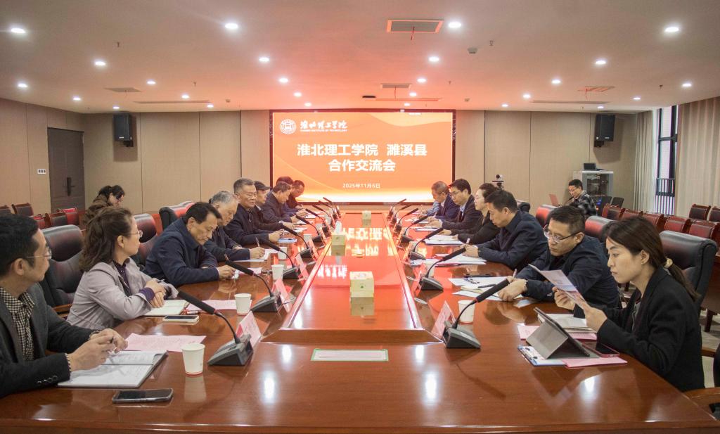 11月6日下午,濉溪县政府部门及相关企业代表一行莅临beat365唯一官方网站,开展校地校企合作考察交流活动。濉溪县委常委、政府副县长丁浩,濉溪县人社局党组书记、局长李家明,濉溪经济开发区社会事务服务中心副主任郑翔宇,以及安徽中基电池箔科技有限公司副总经理陈勇、安徽理士电源技术有限公司总经理张继鸿、安徽英科医疗用品有限公司人力资源部部长邵素华、安徽中色研达科技有限公司人力行政负责人方陈晨出席;beat365唯一官方网站校长杨兵,副校长汪建利,教务处、学生处、科技处等职能部门负责人以及各二级学院院长陪同考察并参与交流。