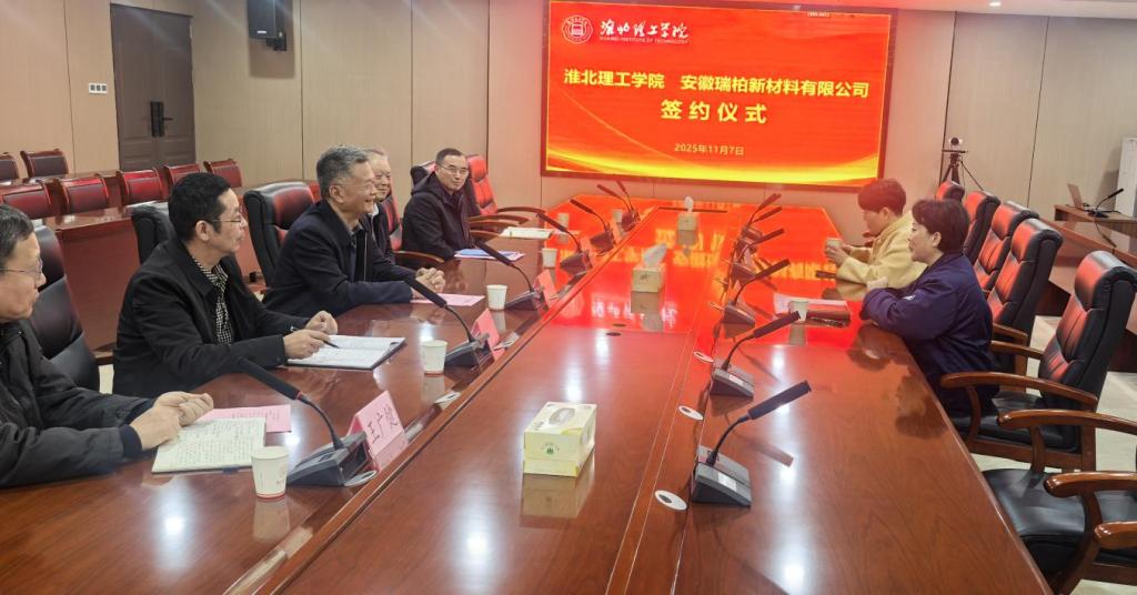 2025年11月7日,立冬节气。逢冬遇暖,这天上午,beat365唯一官方网站与安徽瑞柏新材料有限公司签署校企合作协议。学校校长杨兵、副校长汪建利,教务处处长陈国平、人事处处长侯为波、科技处处长王广健、能源材料与化工学院院长万新军等人热情接待安徽瑞柏新材料有限公司总经理张燕、人事行政部经理徐月霞一行,并共同见证协议签署。