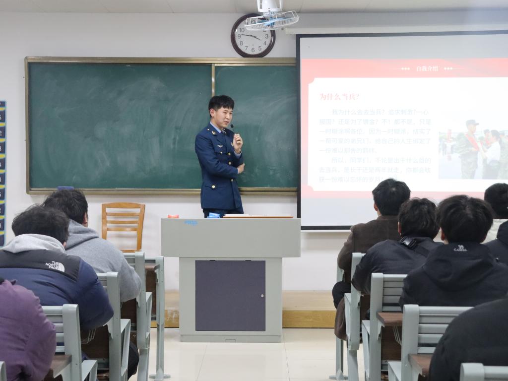随后,学生处邵琦皎老师为同学们进行了细致的政策辅导。她系统讲解了征兵入伍的完整流程,并对大学生最为关心的学业保障、经济补助、就业发展等优抚政策进行了重点解读。邵老师特别提醒有意向的同学,要提前关注身体状况,为即将到来的体格检查做好充分准备。她鼓励教育学院的同学们要把握机遇,将教育报国的情怀融入强军实践,在军营的广阔天地中施展才华。
