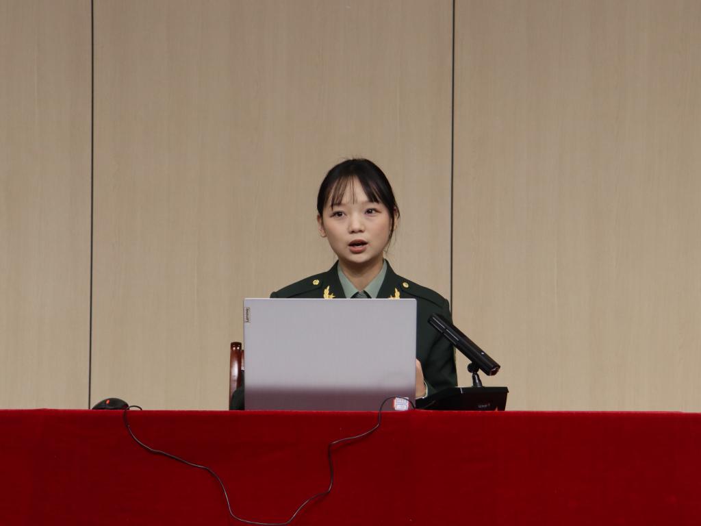随后,学生处邵老师表示,女兵是国防力量的重要组成部分,巾帼从军不仅是对个人能力的挑战,更是对家国情怀的践行。她鼓励在场女生以勾长玉同学为榜样,勇敢追逐军旅梦想,将青春芳华融入强军兴国的伟大事业。