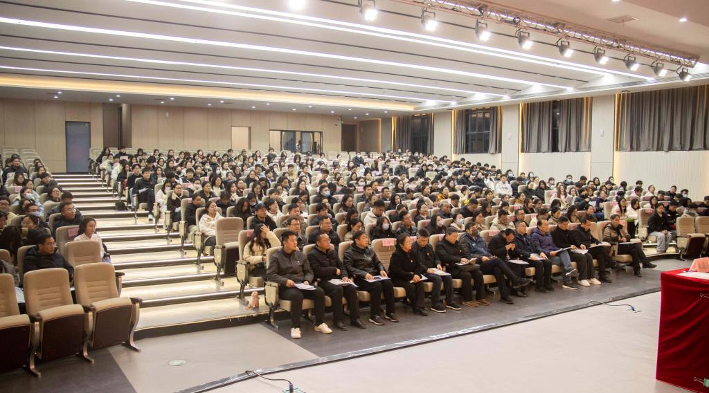 校长杨兵以“深学细悟党的二十届四中全会精神 勇担使命谱写学校高质量发展新篇章”为题,作深入学习贯彻党的二十届四中全会精神宣讲报告。从“深刻领会党的二十届四中全会的重大意义和核心要义”“准确把握‘十五五’时期在基本实现社会主义现代化进程中的重要地位”和“深入学习贯彻全会关于教育改革发展的新部署、新要求”三个方面全面完整地解读党的二十届四中全会精神。从深入细悟明方向,知行合一促发展;坚守育人初心,筑牢立德树魂根基;谋划学校未来发展蓝图,制定学校“十五五”发展规划;深化改革创新,激发内涵发展活力;聚焦质量提升,夯实办学核心基础;强化队伍支撑,凝聚奋进发展合力六个方面,明确了学校全面深入学习贯彻党的二十届四中全会精神具体举措,激励全体党员以只争朝夕、永不懈怠的奋斗精神,锲而不舍的韧劲,踔厉奋发、勇毅前行,贯彻好落实好党的二十届四中全会精神,奋力谱写学校高质量发展新篇章。