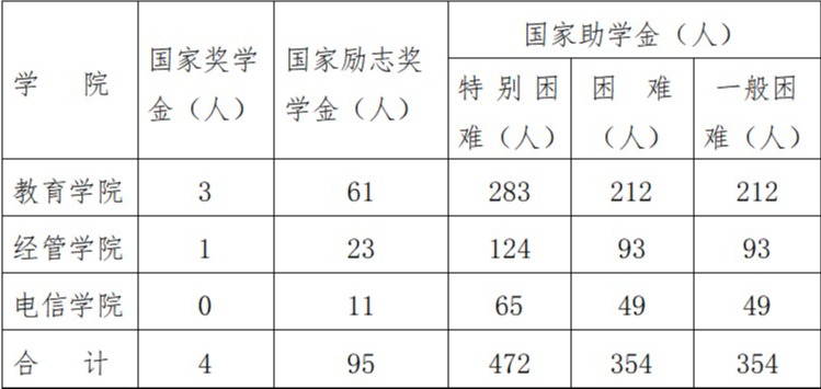 省教育厅、财政厅2022年下达beat365名额:国家奖学金4人,国家励志奖学金95人、国家助学金1180人。