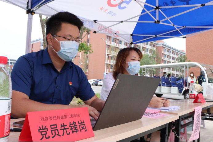喜迎二十大,永远跟党走,奋进新征程。为积极配合学校做好迎新工作,引导广大学生党员充分发挥先锋模范作用,在志愿服务中践行初心使命、体现责任担当,迎新期间,马克思主义学院与经济管理学院党总支以学生党员“我为同学办实事”活动为契机,率先设立“党员先锋岗”,组织管理学学生党支部、经济学学生党支部全体学生党员投入迎新工作,开展“我为新生办实事”迎新党员志愿服务活动。